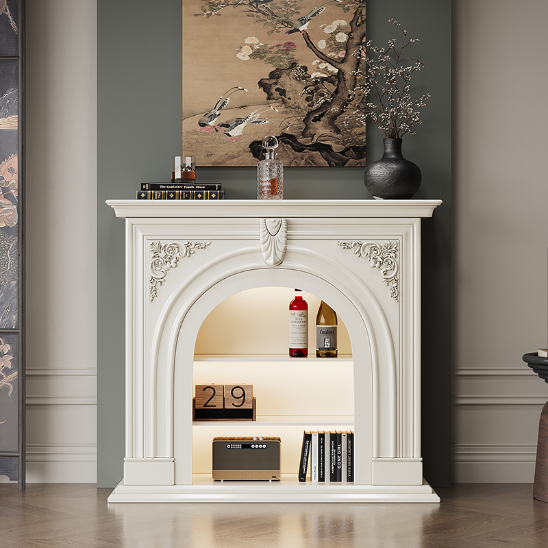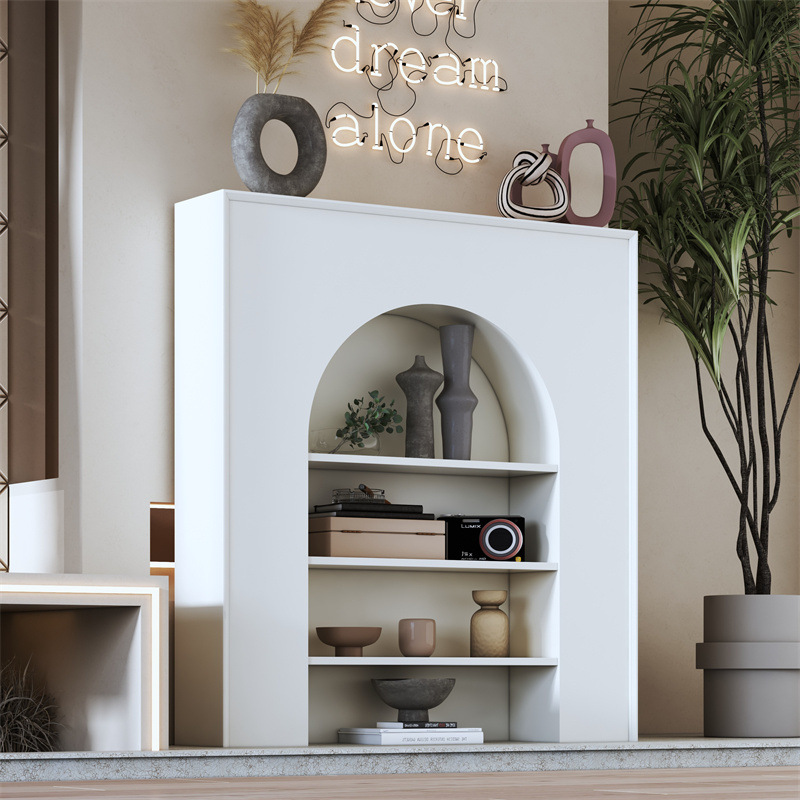 ファッショナブルなヨーロピアンスタイルの家庭用屋内白フレンチスタイル暖炉装飾キャビネットアーチ型アート棚B&B玄関ホール