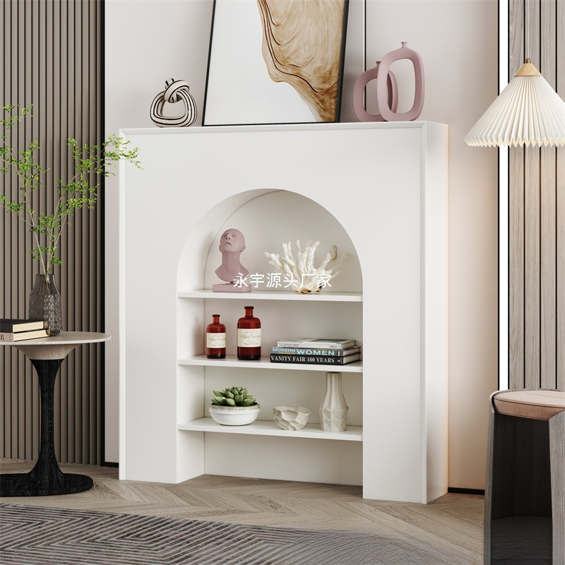 ファッショナブルなヨーロピアンスタイルの家庭用屋内白フレンチスタイル暖炉装飾キャビネットアーチアート棚B&B玄関ホール