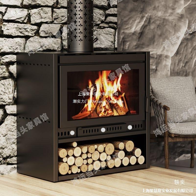 組み込み式独立型真火燃木暖炉暖房器客間別荘鋳鉄薪ストーブ復古現代家庭用