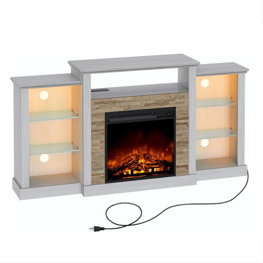 暖炉テレビスタンドにはledランプと電源コンセント、テレビキャビネット、調節可能なガラス暖炉キャビネットがついている