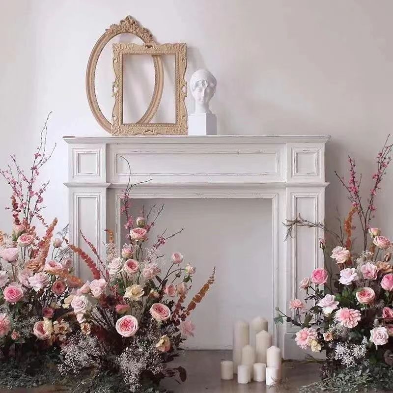フランス式暖炉クリーム飾り戸棚北欧玄関シンプルな白い民宿撮影入戸ネット赤客間ins