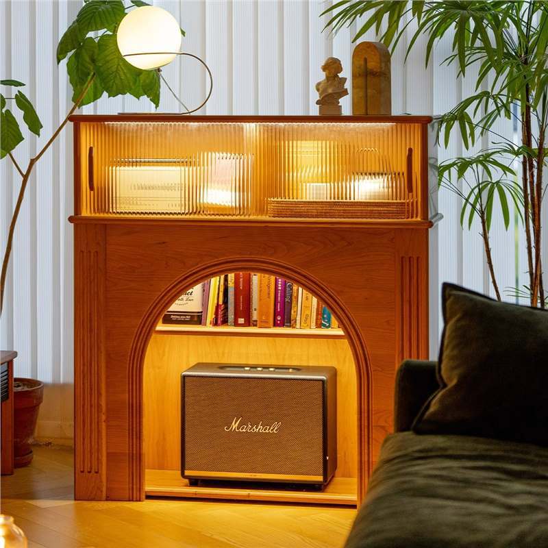 フレンチ式クリーム風壁炉キャビネット発光装飾キャビネットリビングルーム物置キャビネット撮影玄関キャビネットins風民宿寝室