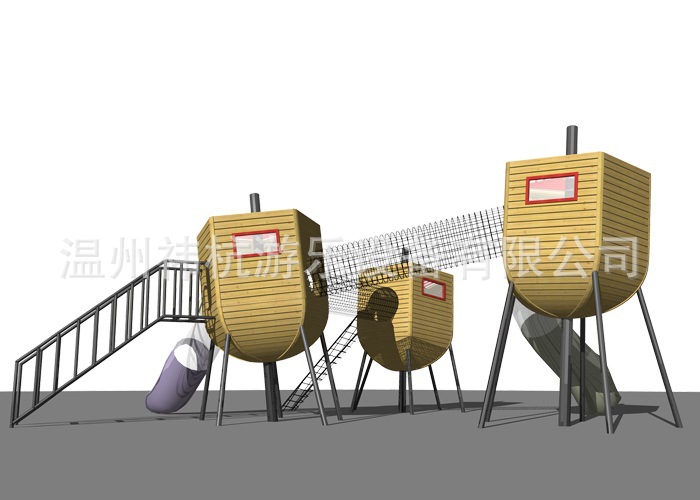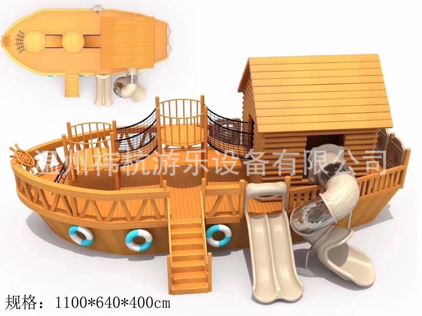 屋外大型滑り台木造汽船造形海賊船玩具児童遊園地公園幼稚園施設