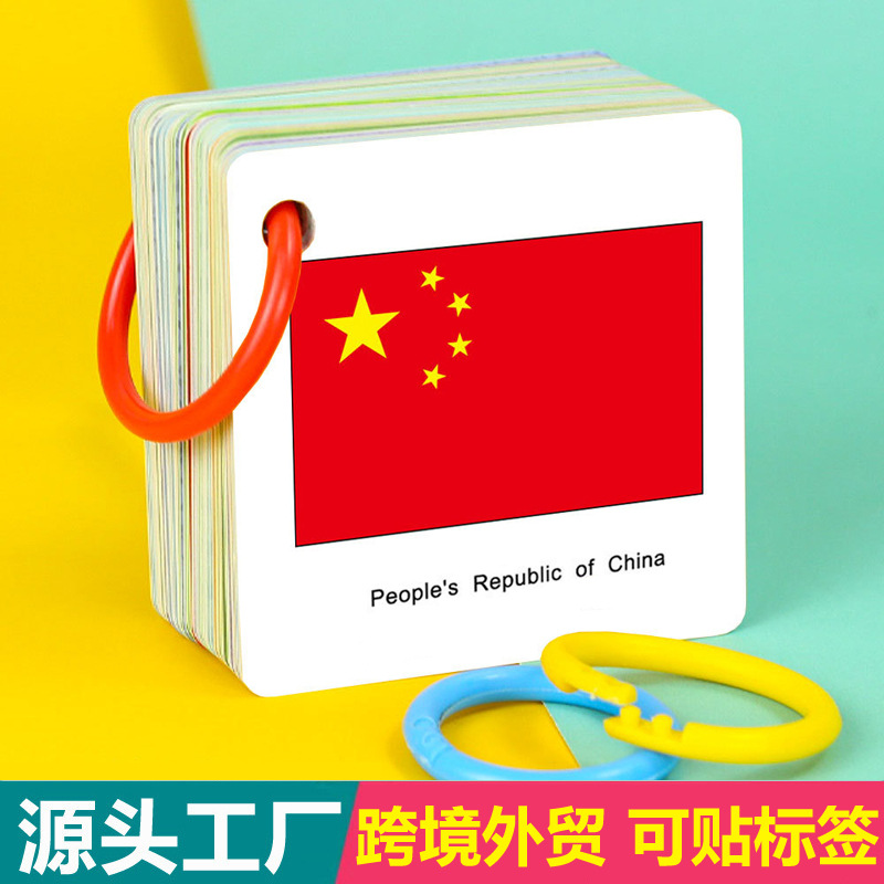 国境を越えた英語の世界の国旗カード、子供用の世界の国旗認知カード、早期教育カード、外国貿易おもちゃ