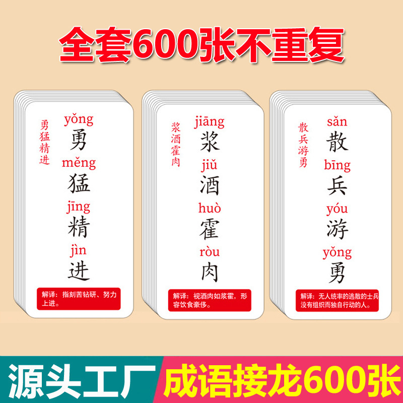 成語接龍カードトランプセット600枚小学生版親子趣味インタラクティブゲームカード卸売り