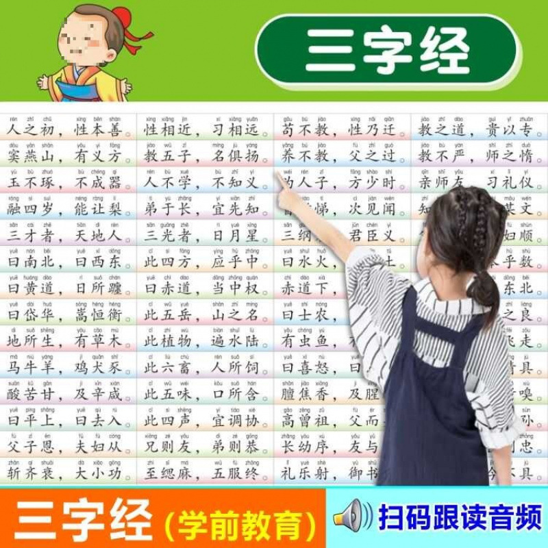 三字経、千字文、百姓、弟子規、古詩、小学生向け啓発知識ポイント一式、ウォールチャート、ウォールステッカー