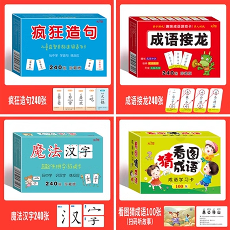 ボードゲームカード、人気のクレイジー文、接続詞、文カード、魔法の漢字読み書きカード、イディオム、ソリティア、イディオム