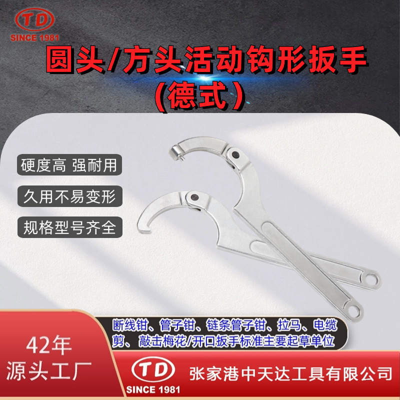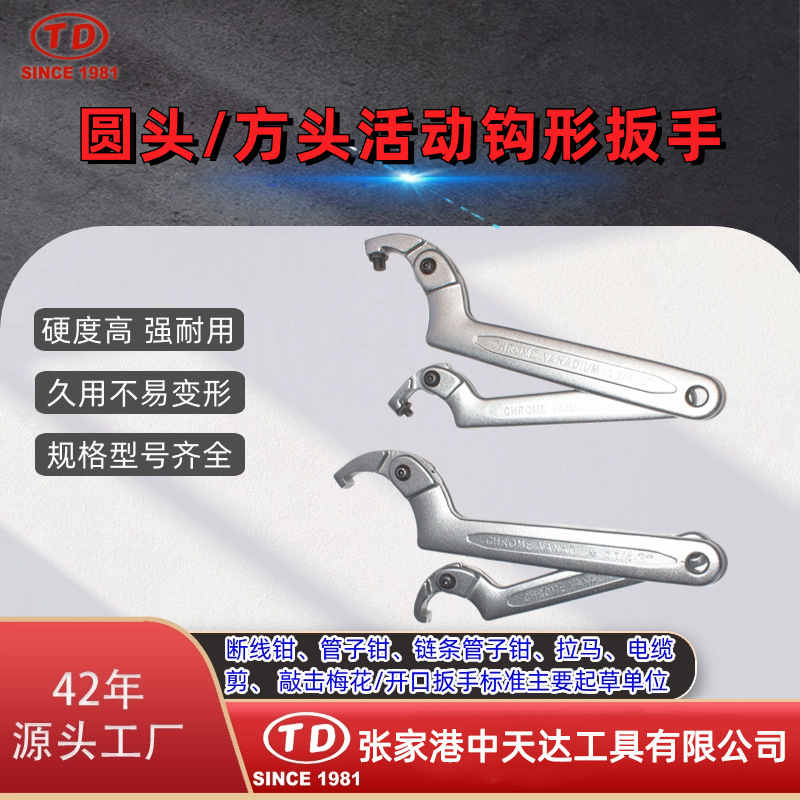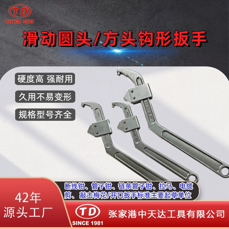 クリップスライダー三日月レンチ調整可能スライド丸頭/角頭フック型レンチtd1208a/td1208