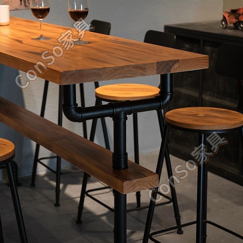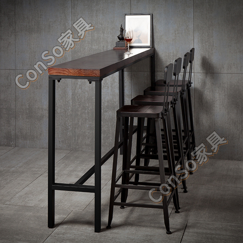 CSP2バーテーブルシンプル家庭用実木長条高テーブル鉄芸ミルクティー店バー高足椅子壁テーブル