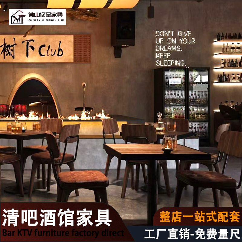 音楽酒場のテーブルと椅子の二麻清バーのレトロなレジャーバーの飲み屋の家具の工業風のカードの組み合わせ