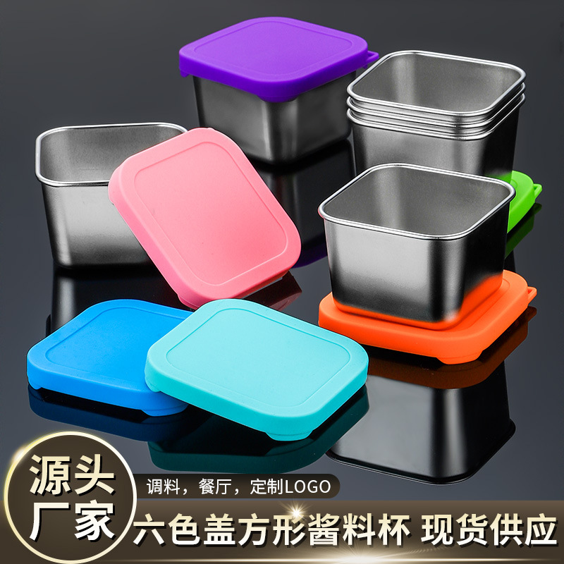 304ステンレス角型スナックカップ180ml漏れ防止サラダソース容器ランチボックスシリコン蓋密封スナックボックス