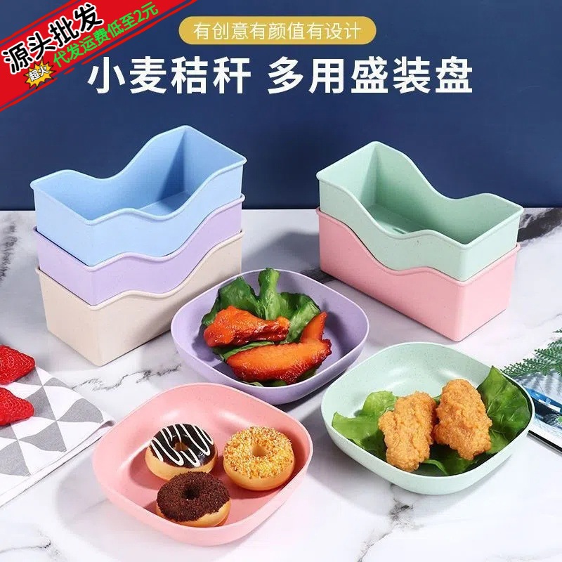 代発帯台座家庭用小麦わら吐骨皿果物食卓ごみ方形深深プラスチック皿現物