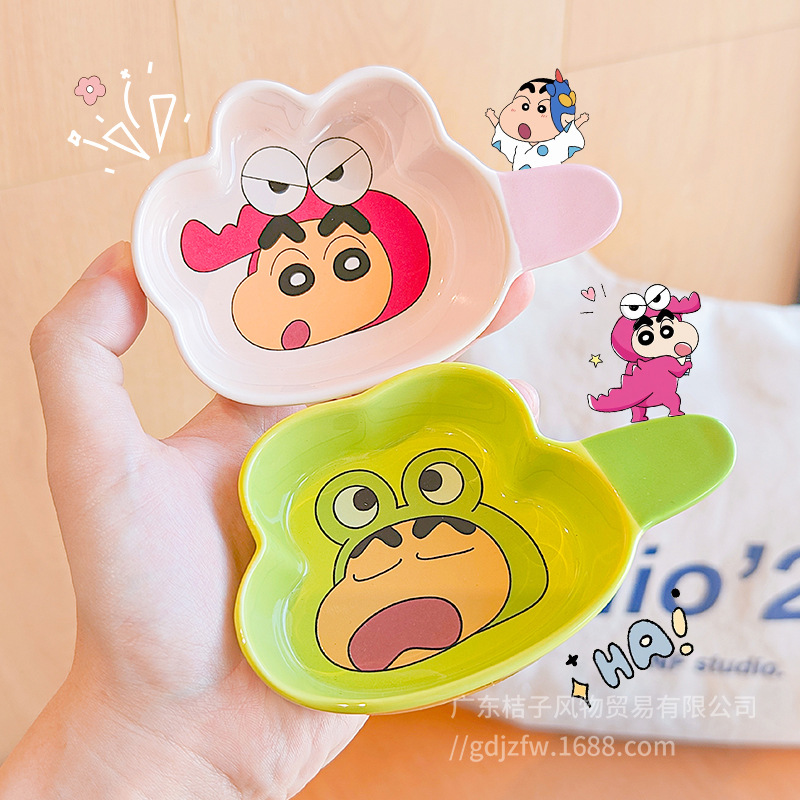 クレヨンしんちゃんディップ皿調味料皿陶磁器味皿小料皿家庭用2025新型アニメかわいいハンドル皿