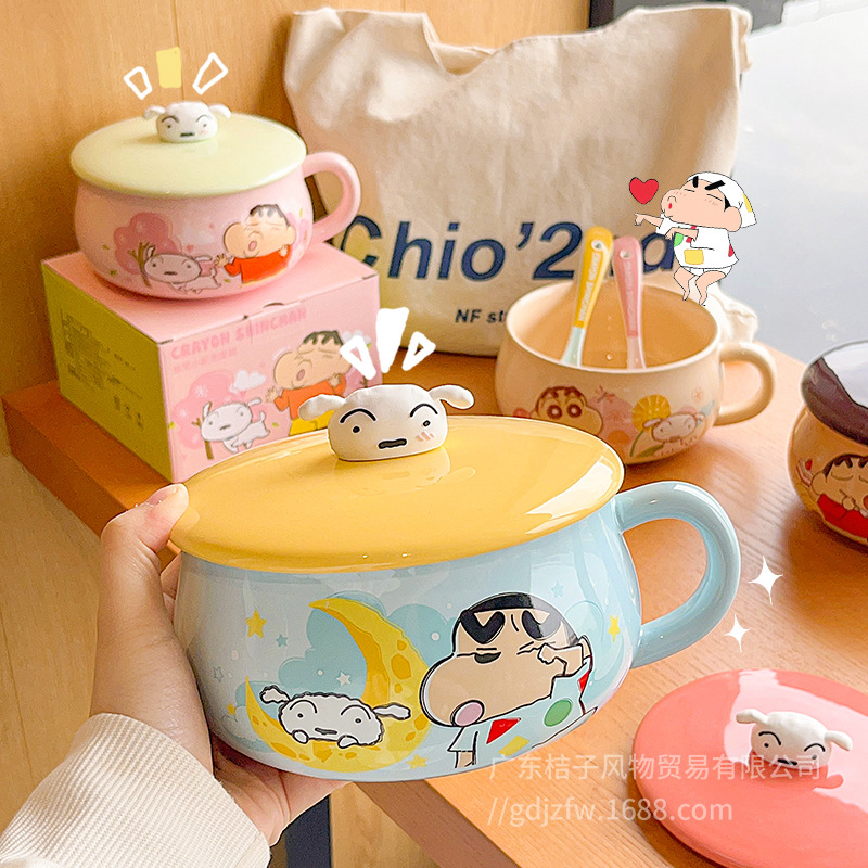 クレヨンしんちゃんインスタントラーメンボウルラーメンボウルスープボウル蓋付き食器2025家庭用新漫画大容量ヌードルボウル