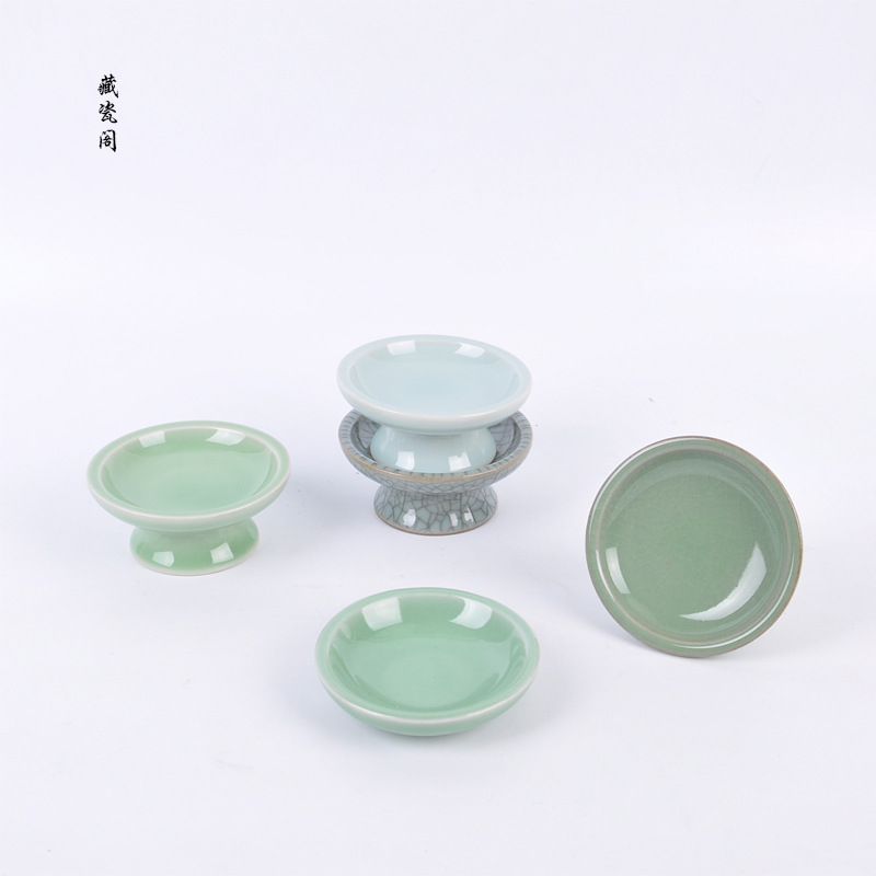チベット磁器の陶磁器の酢の皿は家庭用中国式の青磁のミニの高い足の小さい果物の皿の文の部屋の小さい墨の皿のペンをつけてなめます。