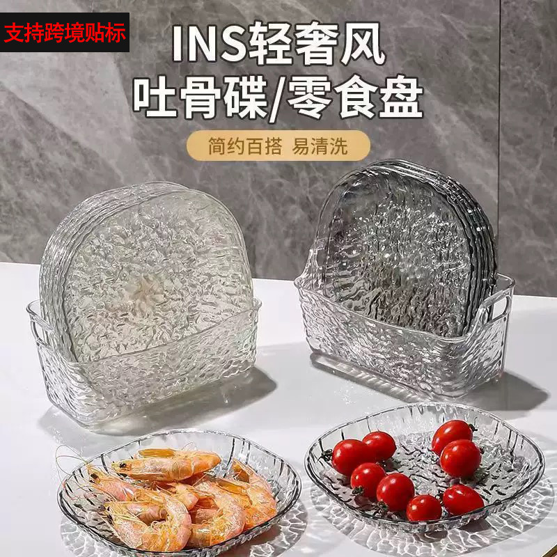軽くて豪華でシンプルな氷河模様の家庭用骨吐き皿、テーブルゴミ皿、ネット有名人の透明な卓上骨吐き皿小皿セット