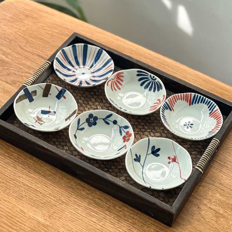 花形小皿 調味皿 酢皿 醤油皿 つけだれ皿 洋風 家庭用 釉下彩 陶器食器 送料無料