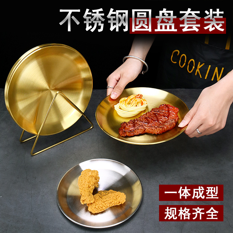 韓国式ステンレス円盤金色の骨皿セット家庭用収納棚付き骨皿スナック皿皿