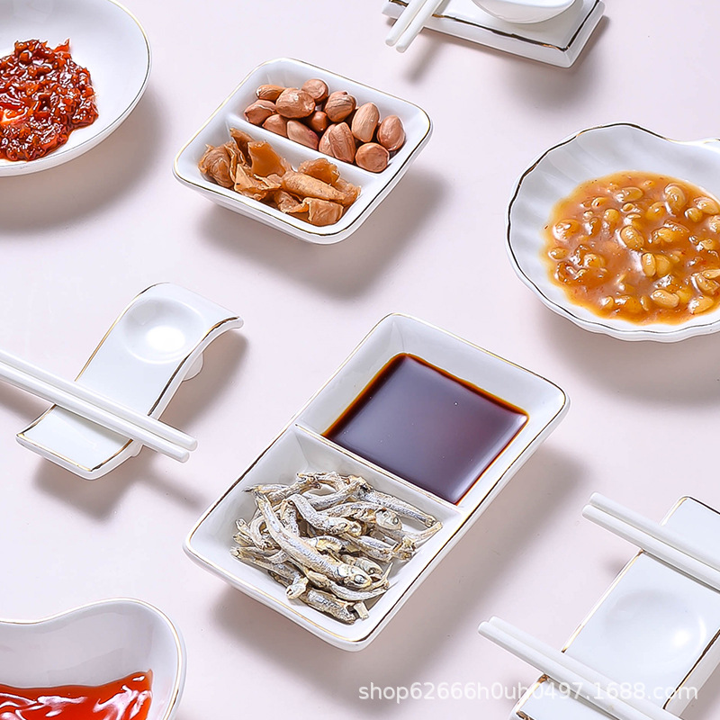 陶磁器の金の辺の家庭用のホテルの北欧の日本式の調味料の皿の酢の皿のソースの皿のキムチの小皿の食卓の箸の棚