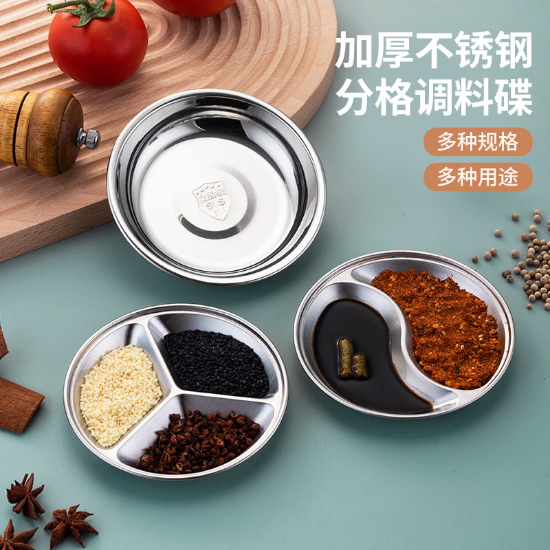 304ステンレス調味皿円形分格味皿調味料調味料軽食レストラン商用果物菓子皿