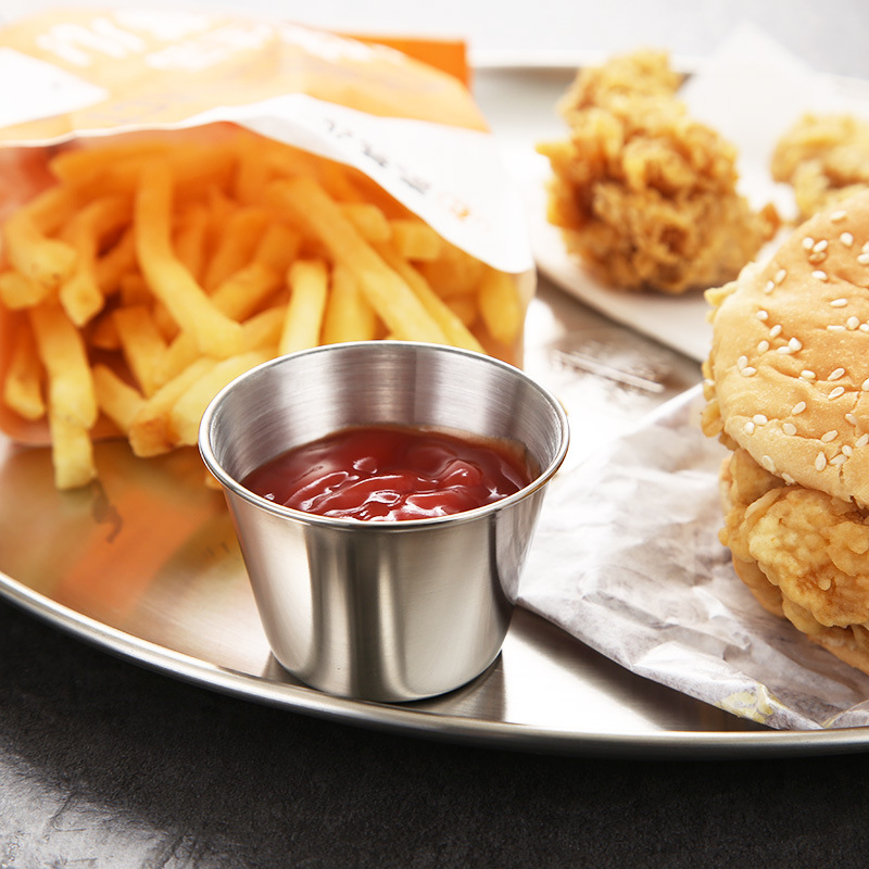 厚いステンレスのソースのカップのソースの杯のポテトチップスのトマトのソースの皿のレストランの唐辛子のソースのディップの小さい杯