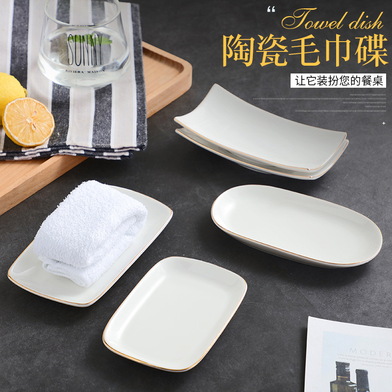 ピュアプラチナエッジセラミックタオルディッシュソープディッシュ楕円形長方形タオルホルダーホームウェットティッシュトレイタオルトレイ