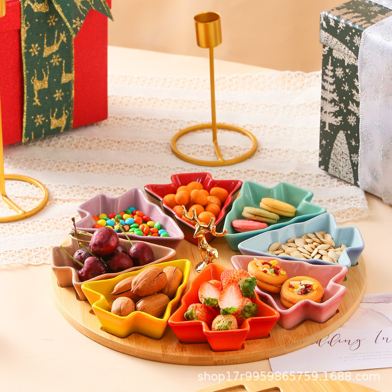 クリスマスツリーの形の陶磁器の皿家庭用リビングルームのスナックの果物の皿ホテルのレストランの鍋の味付けのおかずの皿