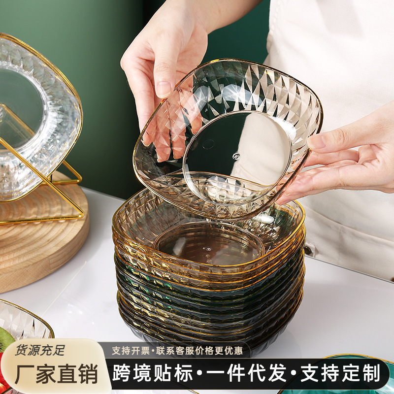 YQ 2308 軽奢透明フルーツプレート、骨付き果物皿、金縁高級感、ドライフルーツプレート、フルーツプレート、スナック皿