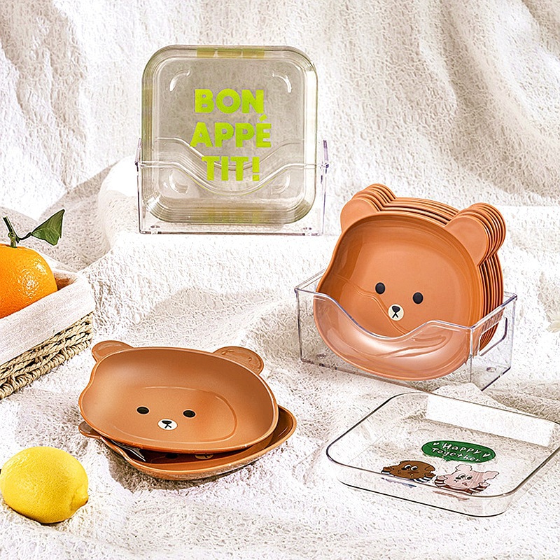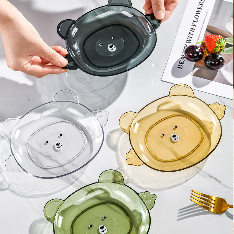 漫画の熊が骨皿を吐く家庭用食卓のゴミ皿は透明でかわいい軽食皿プラスチック骨皿果物皿