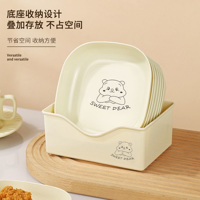 クマの骨吐き皿、テーブルゴミ皿、フルーツスナック皿、ネット有名人の正方形のデスクトップ漫画のかわいい皿