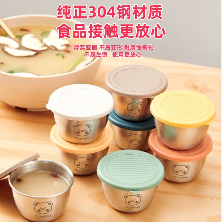✅ ミニポータブル 304 ステンレス鋼ディップ調味料ボックス漫画クマソーサー蓋付きケチャップサラダソース