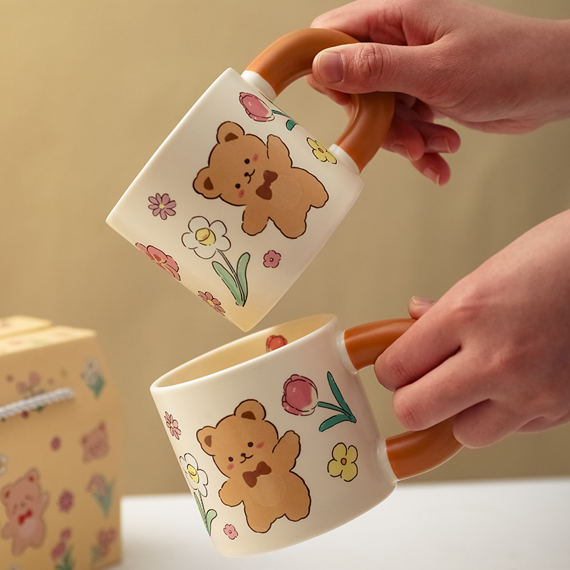 漫画のセラミックカップ、蓋付きの見栄えの良いクマのマグカップ、女の子の誕生日プレゼント、カップルのウォーターカップ、親友へのギフト