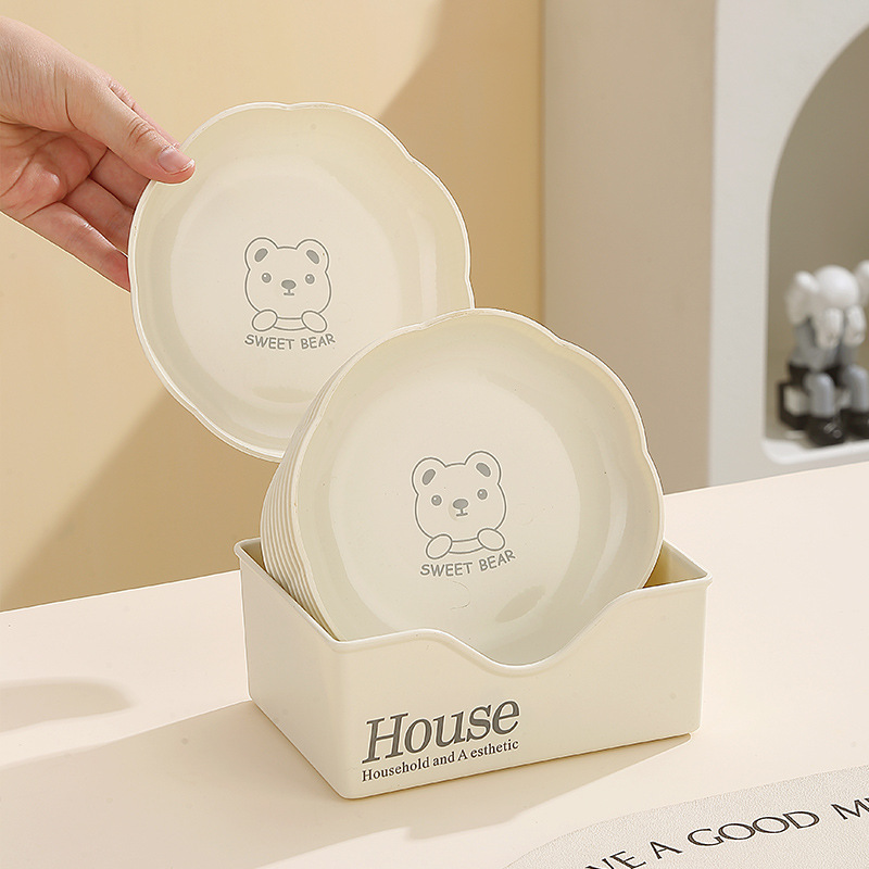 食いしん坊熊吐骨皿家庭用食卓銀辺乳白小皿プラスチックスナック果物皿卸売り