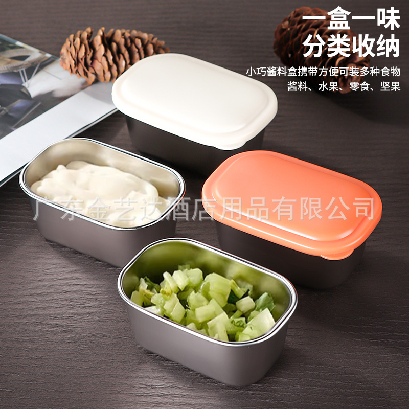 ベアー304ステンレス製ディスペンサーケース蓋付き味付け保存容器サラダケチャップフライドチキン密封ソーサーカップ