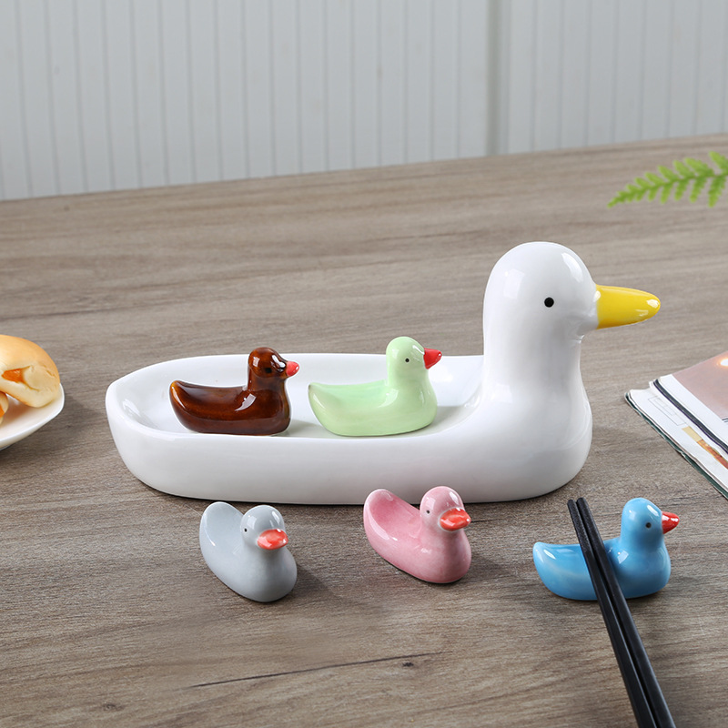 日本式の創意的な小黄鴨陶磁器のおかず皿の小皿のアヒルの食卓の置物の箸棚の家庭用箸は箸の枕を支えます。