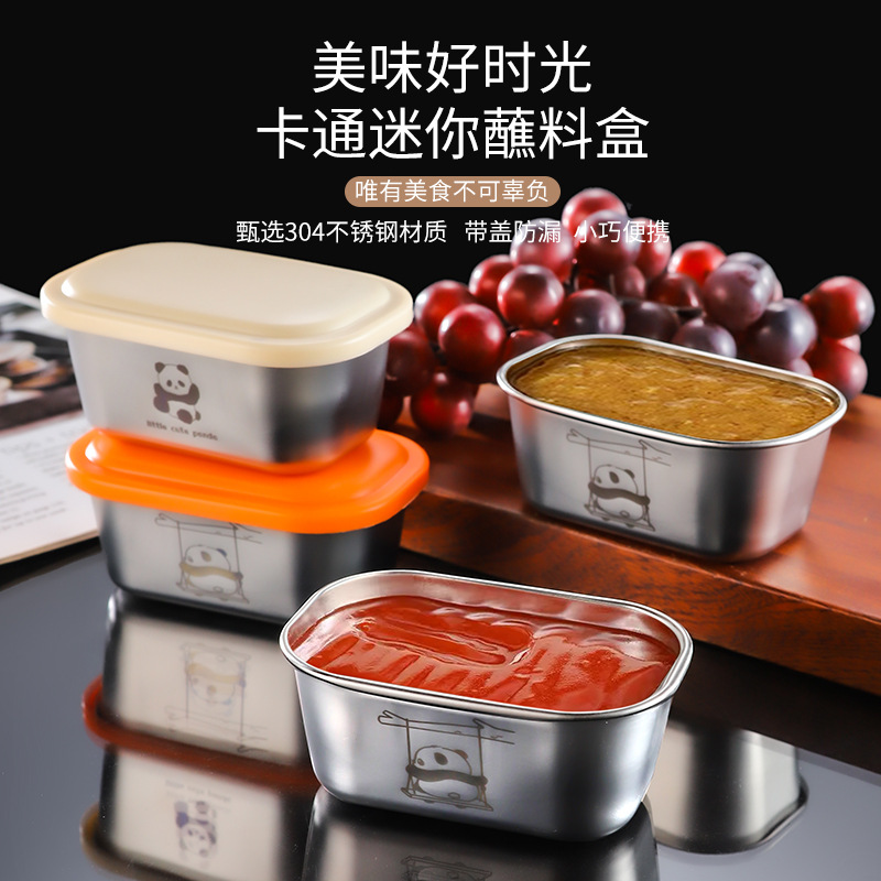 304 ステンレス鋼の調味料ボックス収納ソースカップ蓋付き特別なミニ調味料皿ソースカップディップソース皿調味料ボックス