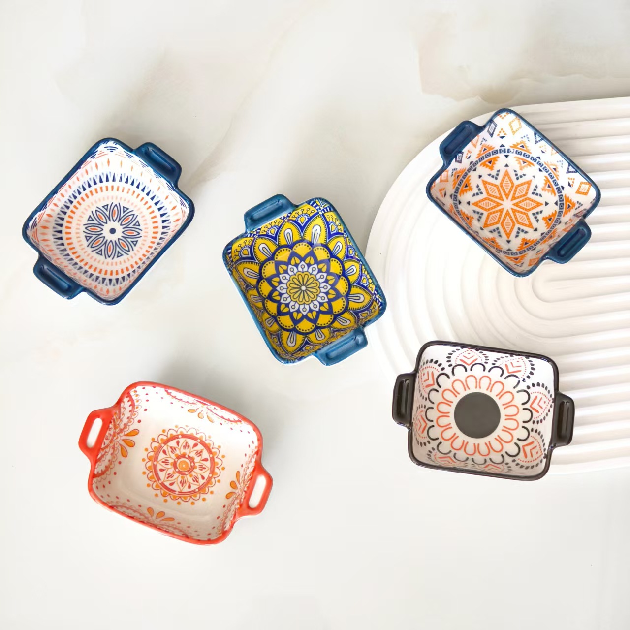 キッチン調味料皿ボヘミアン家庭用味皿酢皿双耳個性ディップ醤油調味料碗釉薬下彩
