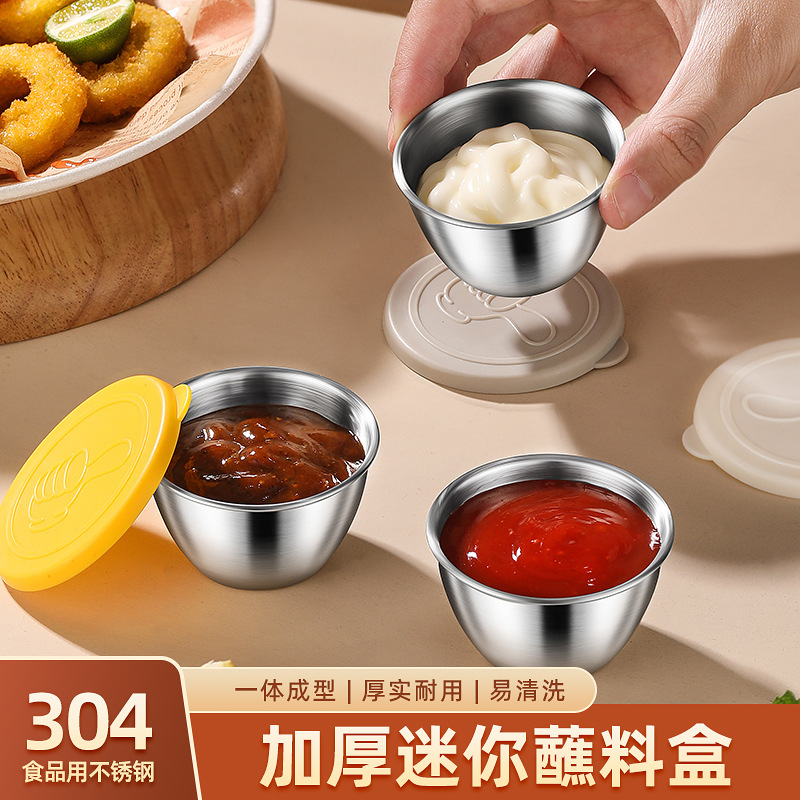 国境を越えた新型304ステンレス携帯防漏保鮮容器サラダケチャップシリコン蓋付け皿卸売り