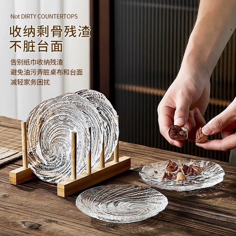 骨を吐く家庭用のテーブルのごみの骨の皿のおかずの皿は果物のお菓子の乾燥した果物の軽食の皿の透明な氷河を詰めます。