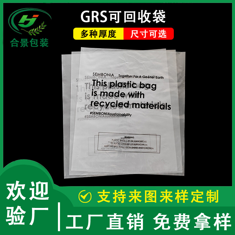 Grsリサイクル可能pe自己密封袋透明包装袋タオル下着自己密封袋grsビニール袋印刷ロゴ