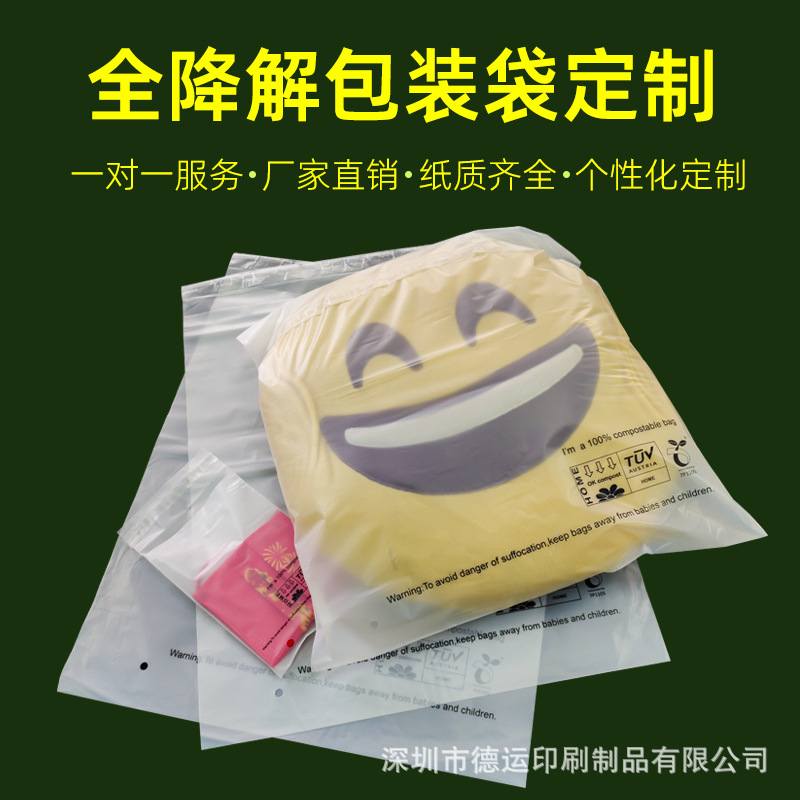 現物卸売りpla透明厚さ印刷分解袋から穴を開けて袋を分解できる服装包装袋
