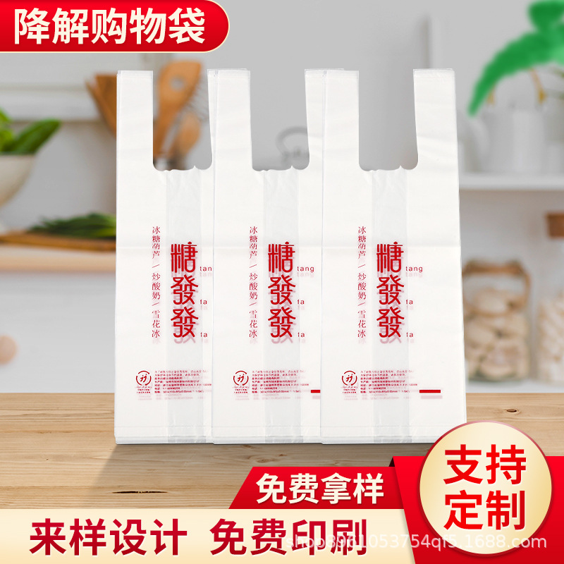 Pla分解性ビニール袋カスタム全生分解性レジ袋飲食販売包装袋ミルクティー袋分解