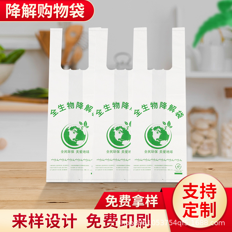 生分解性プラスチック製のスーパーマーケットでの買い物、ケータリング、テイクアウト用の使い捨てハンドバッグは、卸売可能で、環境に優しく、リサイクル可能で、厚手です。