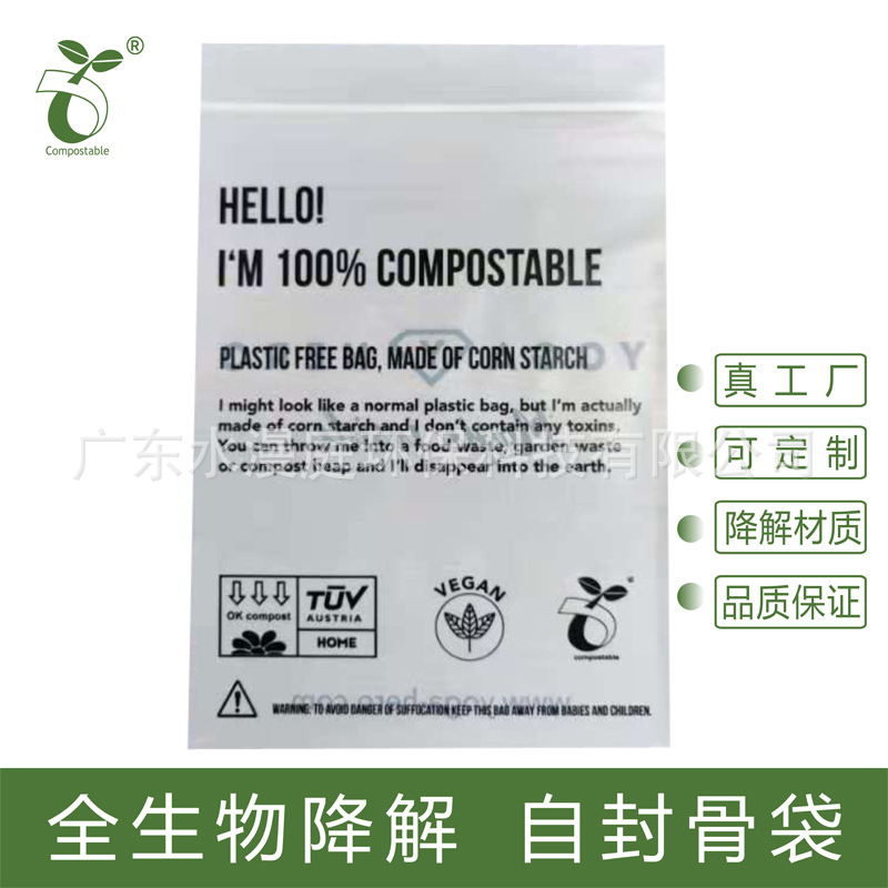 生物全分解袋pla + pbatトウモロコシ澱粉服装自己接着骨袋100% 分解性包装袋メーカー
