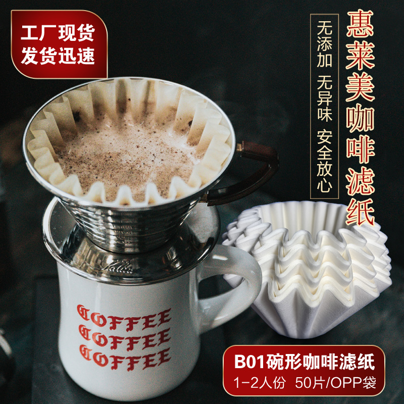 恵莱美漂白155MMケーキコーヒーろ紙波形50枚1-2人分家庭用コーヒーマシンろ過紙