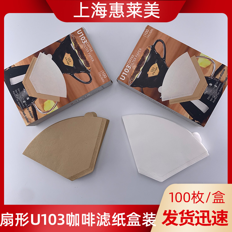 家庭用アメリカu型103純木パルプコーヒーマシン濾過紙カラーケース4-6杯100枚扇形コーヒーろ紙