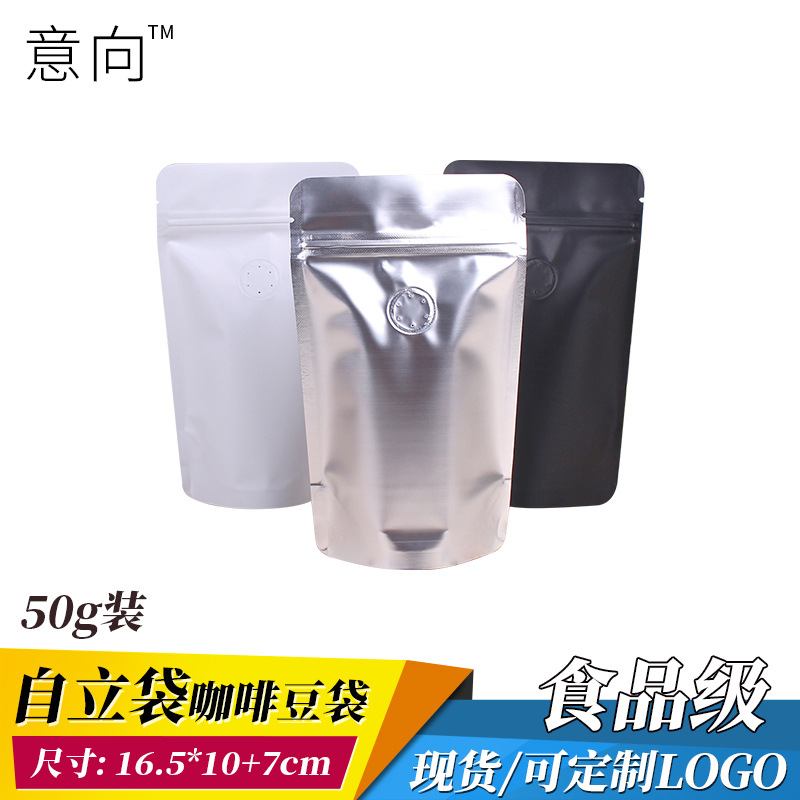 意向コーヒー器具50グラム一方向気弁コーヒー豆サンプル袋アルミ箔自立自己密封コーヒー豆包装袋