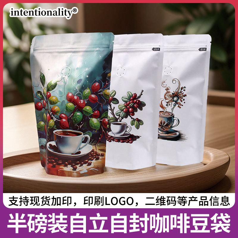 意向コーヒー半ポンド一方向気弁コーヒー豆袋クラフト紙アルミ箔自立自己密封コーヒー豆包装袋