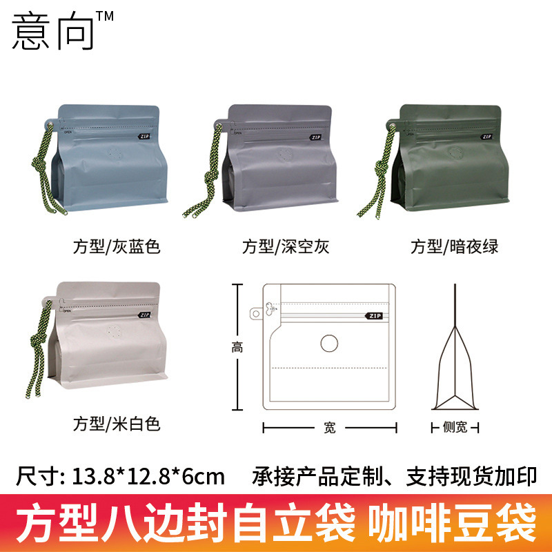 意向コーヒー100グラム単方向排気弁コーヒー豆袋食品級八辺封アルミ箔コーヒー豆包装袋