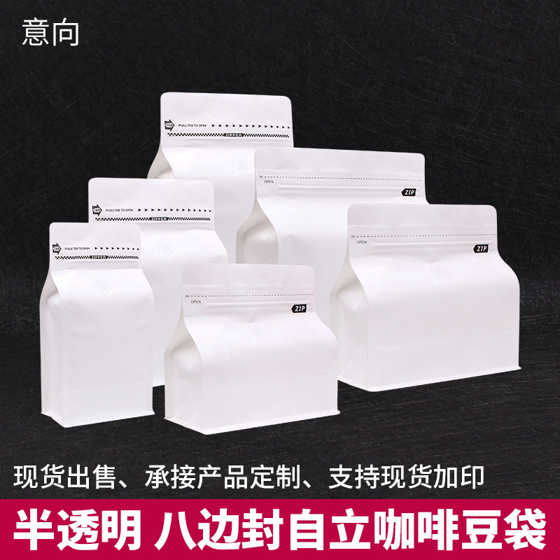 意向コーヒー豆袋半透明クラフト紙八辺封気弁袋密封防湿コーヒー豆包装袋
